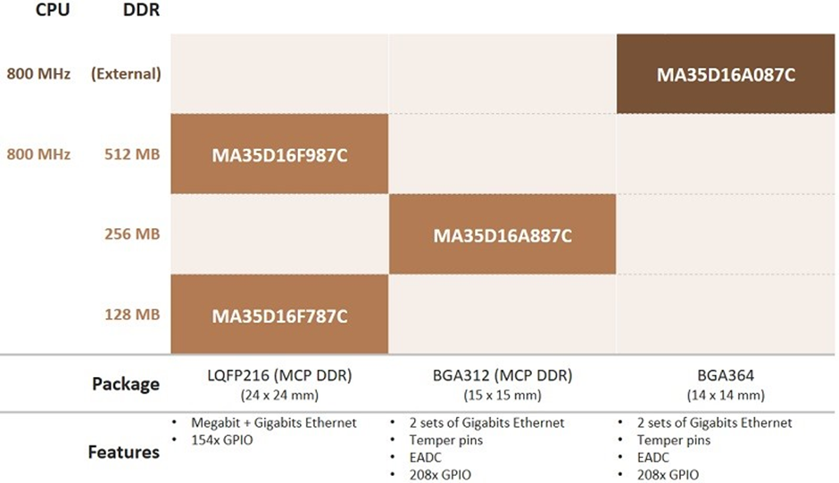 MA35D1 시리즈는 다양한 애플리케이션을 위한 LQFP BGA 패키지를 제공합니다.